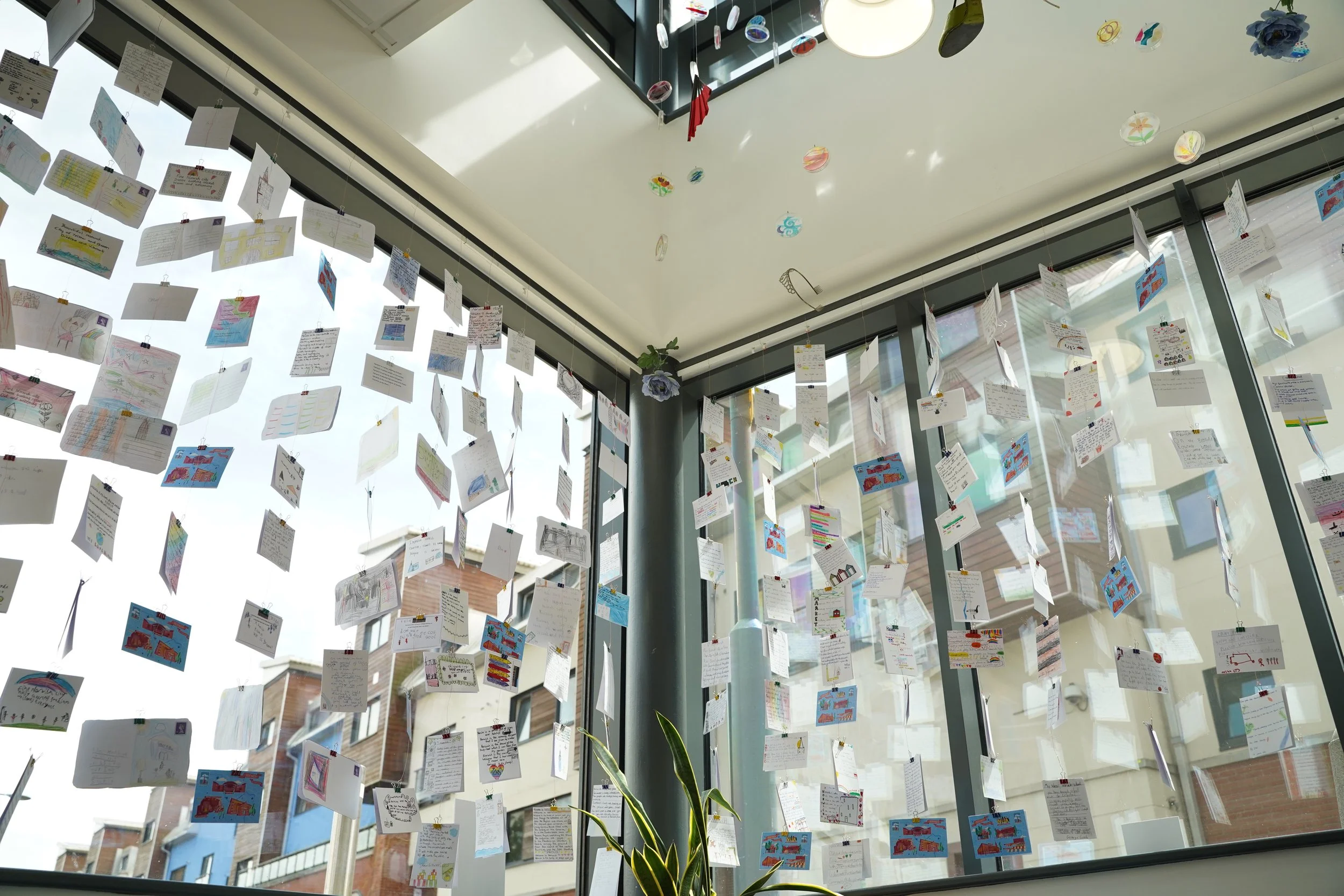 Postcard Poems was the first large scale project Emily produced as coordinator of the LCEP. Over 15 local schools were invited to write bite sized poems about the things they wanted to celebrate about Norwich. These poems were then displayed across Norwich in windows as part of the Young Norfolk Arts Festival 2022. Emily also oversaw and coordinated a pop up exhibition ‘Pathways’ featuring artwork from a workshop with New Routes.